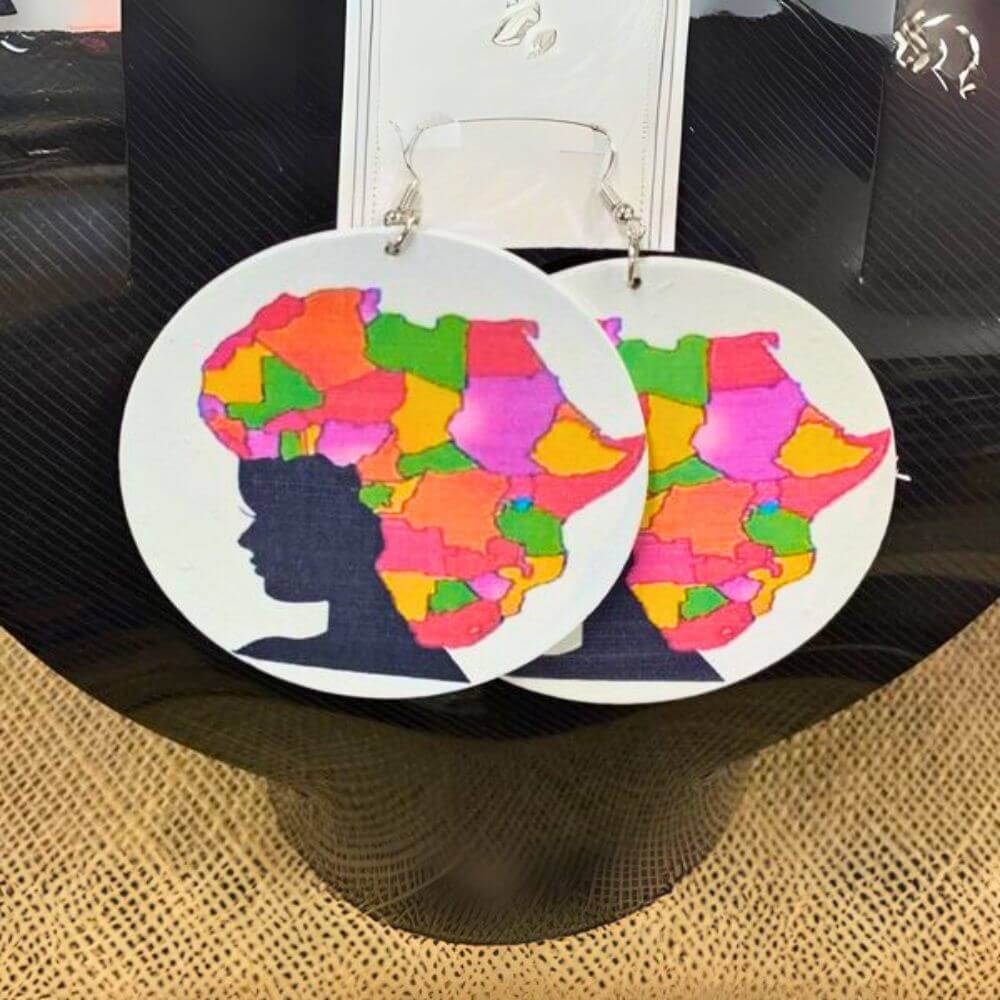 African Map Wood Earring