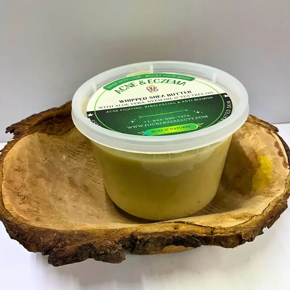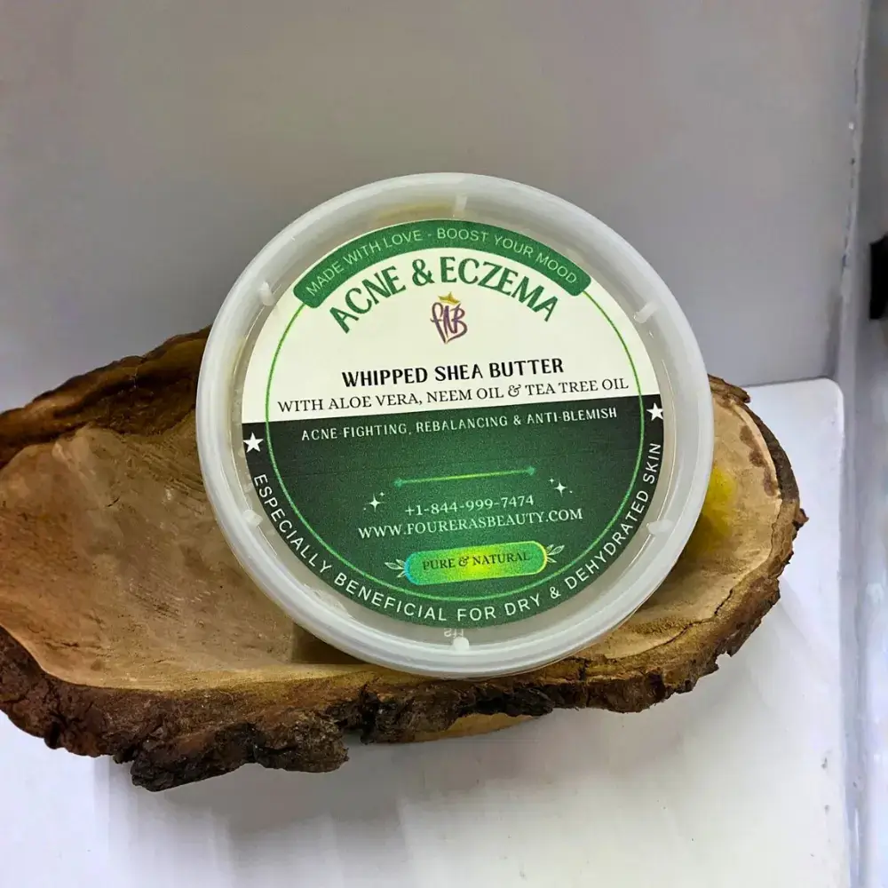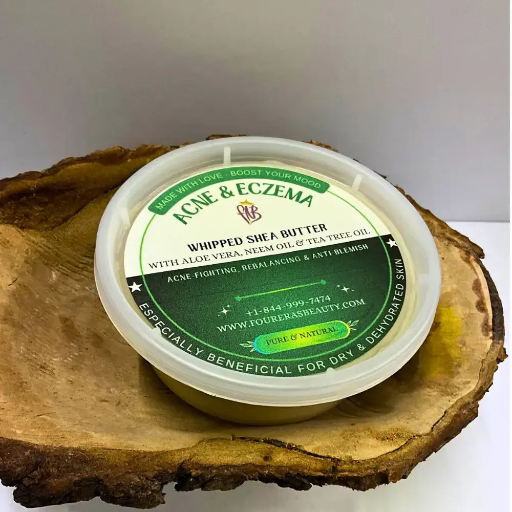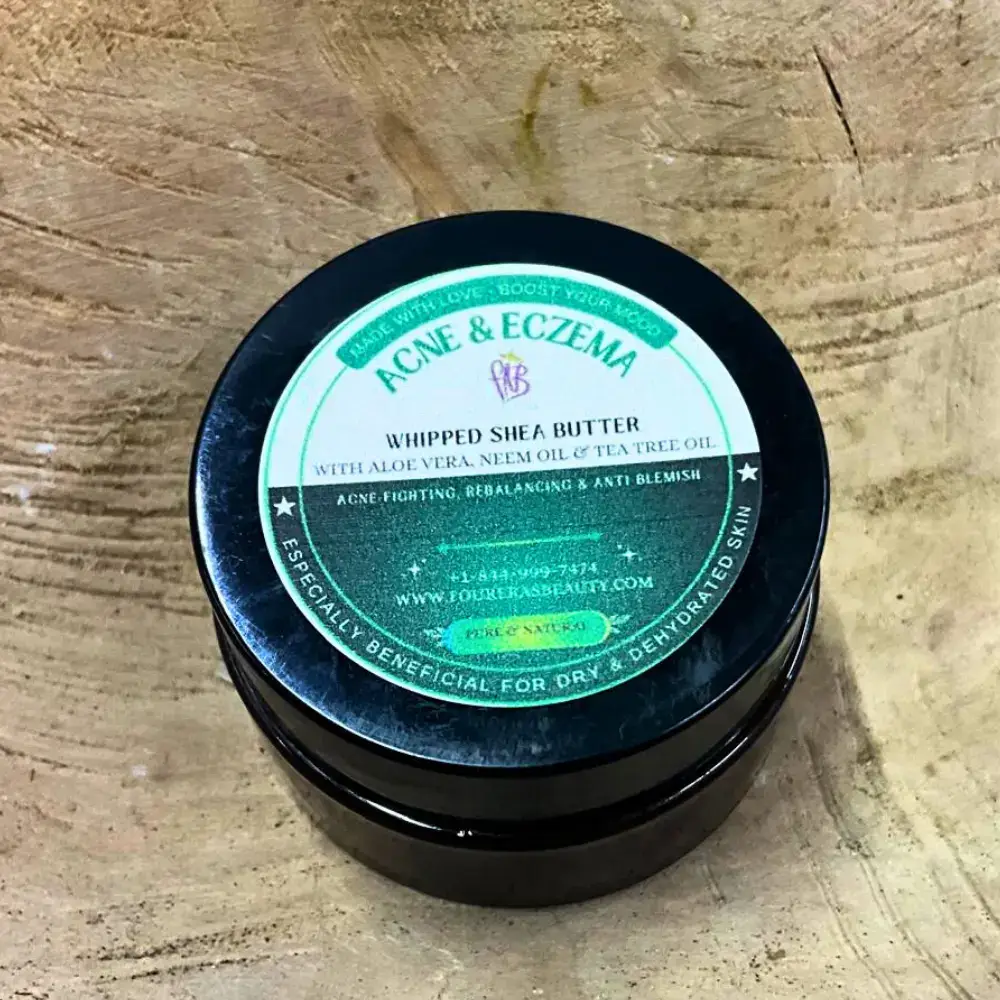Stop the cycle of irritation and dryness. Our Acne & Eczema Whipped Shea Butter forces a biological reset, neutralizing active blemishes while flooding dehydrated cells with healing lipids. You get a balanced, calm complexion and a professional-grade shield against future flare-ups.